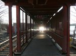A nice station which has recently been renovated is next, Bay Terrace, an island platform located on an embankment. The exits at both ends are well maintained, especially the north exit, which has a glass awning and brick sides. Both Bay Terrace and Jefferson Ave. are notable in that they have historically served residential areas, not business districts, as the other stations do. North exit to Bay Terrace, south exit to Justin Ave.
