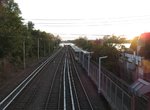 Next up is Richmond Valley, a flag stop nestled between Page Ave. and Richmond Valley Rd. Exit from the Tottenville platform and end of the two wall platforms is up while the St. George platform exit is down. This station is in need of renovation. A grade crossing at Richmond Valley road was removed in 1940. The Tottenville-bound track has a non-electrified spur that once ran all the way to the Arthur Kill. The spur was built in the mid 1920s and dubbed by the B&O as the West Shore Line. The B&O delivered building materials to the Outerbridge Crossing construction site near the Kill. There was also a small industry on the spur known as Roselli Bros. The track remains intact today all the way to Page Ave. The switch at the spur is well kept and working. Note in the image taken from Page Ave., that the spur still extends quite far from the station, and the creek that runs parallel to the track. Very bucolic indeed! A St. George bound SIR train is visible in the background.