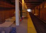 Jefferson Avenue is next, which has canopies over the only exit at the north end, to Jefferson Ave. Jefferson Ave. crossover, two manual switches, is visible from the north end. This station begins the descent from the embankment to the open cut of the next few stations.