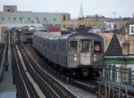 From this station and all of the others you get wonderful panoramas of the bedroom districts of Brooklyn. The line skirts low apartment blocks, single houses, movie theaters, shopping strips, automobile services, little parks and playgrounds, and lots and lots of trees.