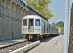 Stapleton is the next stop, an island platform also situated on a concrete viaduct. South of the station, yard tracks can be seen entering the line on the St. George-bound side. This is the connection to the Clifton shops, and where SIR's R44 cars are moved to and from the TA system (by truck).