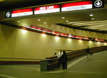 Downtown Crossing (Renamed June 26, 1985, formerly Washington; opened April 4, 1915.) Downtown Crossing has two tracks and two outside platforms which extend from west of Hawley St. to east of Chauncy St.. There is a low wall with columns between the tracks. At the west end, the platforms continue as passageways to the west side of Washington St. leading to stairways up to the Winter platform. The north stairway is divided into two equal flights. The upper flight of the southern stairway matches that of the northern one, but the lower flight is divided into three sections each on a slightly different heading. The Winter Street Concourse which is within fare control, connects the Winter platform to the head of the stairs leading to the center platform at Park St. Under. Prior to being opened to the public in the 1980s, the passageway was used as storage space and for offices, some of which still remain along the south wall. The Summer St. Concourse extends from the Summer platform to just east of Chauncy St. Originally this was entirely a paid area, with a south side fare control at the west end and a north side fare control at the east end. Four stairwells, two for each platform, connect the concourse with the Washington platforms. Each consists of two flights, connected by a semicircular landing. The westerly pair connect at the landings to direct entrances to the sub-basements of Filenes and Jordan Marsh (now Macy's). The west end fare control was part of the Summer station and extended about 40 feet along the concourse. There was a two flight stairway to the corner of Summer and Washington Sts to the west, and a single flight up to a landing to the east. The landing also served an exit stair from Summer, a flight up to the surface, and a flight down to Filenes main basement. Down at platform level, an escalator leads directly from a high exit on the north platform to Hawley St.. Across the way further east, a similar exit leads to an escalator direct to Chauncy St.