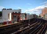 25 Three tracks and two side platforms. Similar to other stations along the line. At the north end of the station the northbound track begins to ascends to pass over yard leads, while the others descend. A three story tower is located north of the Station which has an old blue and white letter sign "Warning -- Do not lean over edge of Platform". North of this tower two yard tracks enter the line. Renovated in 2005.
