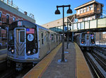 JZ Two tracks, one island platform. This station also resembles Cleveland St. with a tiny island platform and platform level fare control at the north end. The floor is an unusual reddish brick. This is the last station on the 1893 section of the line.