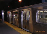The BMT Canarsie line subway started operating in 1924 with BMT Standards. The Standards were delivered by a temporary ramp located near the Montrose Avenue station. See BMT Canarsie Line Car Delivery for more information. The elevated portion of the line may have seen gate car service prior to that. The line continued to operate with Standards until 1969, when the Standards were put out to pasture. BMT odd cars like the Multi-Section units and Bluebirds appeared alongside the Standards. When the Standards were retired, they were replaced by IND R7 and R9 cars, which served until the late 70's. These were replaced briefly by R16 cars, then R27's and R30's. A few R42 cars, delivered in 1969, also made up part of the fleet. These same R42's, along with their brethren and a group of R40 and R40M's held down the Canarsie Line's fleet for many years in the late 1980s and throughout the 1990s. The new R-143 displaced the R40/R42 cars in 2002-2003, in preparation for the line's conversion to CBTC signalling. Some of the R-160 fleet has been converted to CBTC and operates the Canarsie line as well.