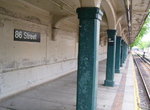 N 86th Street is located in an open cut, and is a local station on the Sea Beach Line, with two side platforms. The station platforms have columns supporting a roof structure for their entire length. Typical of the stations on this line, it was constructed with an exit at both ends, with a street-level mezzanine and a single fare control allowing a free crossover between the two platforms, but the exit at the south end is now employee-access only. The station was fully renovated in 2016-2019.