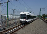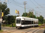 Newark Light Rail LRV #102 at the Lackawanna Broad Street Station on the first day of service. Photo by Frank Pfuhler, July 17, 2006.