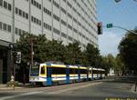 Sacramento CAF LRV #239 approaching Sacramento Valley Station. Photo by Peter Ehrlich, May 2008.