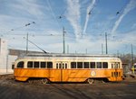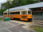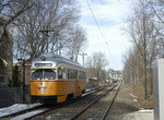 Restored PCC 3268 on the MBTA Mattapan-Ashmont line at Mattapan loop. Photo by Richard Panse, January 2008.