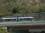 Now we reach Gilman/Paul Avenue station, and a transfer with the 29-Sunset. This is the closest station to Monster Park (Candlestick Park) where the 49ers play. The tracks climb up to LeConte Avenue, where an island-platform station is located at the north end of a short cut. The tracks run through this cut and emerge at the overcrossing of the bustling Bayshore Freeway (US 101), where, looking north, you can see the Bank of America Building and other downtown San Francisco office highrises, and drift downgrade to Arleta Avenue station (island platform) and another major bus transfer point, with bus lines 9-San Bruno, 9X-San Bruno Express (which will take over the functions of the 15-Third Street bus on April 7, 2007) and 56-Rutland, and SamTrans route 292. The old Schlage Lock factory, now closed, is on the left. The "Little Hollywood" district and the Executive Park development are out Blanken Avenue, also to the left, and Caltrain's Bayshore Station lies southeast of here. This is the major center in the Visitacion Valley district.