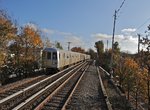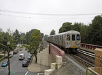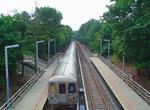 A nice station which has recently been renovated is next, Bay Terrace, an island platform located on an embankment. The exits at both ends are well maintained, especially the north exit, which has a glass awning and brick sides. Both Bay Terrace and Jefferson Ave. are notable in that they have historically served residential areas, not business districts, as the other stations do. North exit to Bay Terrace, south exit to Justin Ave.