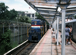 Jefferson Avenue is next, which has canopies over the only exit at the north end, to Jefferson Ave. Jefferson Ave. crossover, two manual switches, is visible from the north end. This station begins the descent from the embankment to the open cut of the next few stations.