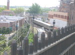 Stapleton is the next stop, an island platform also situated on a concrete viaduct. South of the station, yard tracks can be seen entering the line on the St. George-bound side. This is the connection to the Clifton shops, and where SIR's R44 cars are moved to and from the TA system (by truck).