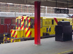 25 Two tracks and an island platform in use, with two disused side platforms; terminal station. The bumper block is at the north end of the station. Signs on the outside platforms warn the conductor, "Do not open this side." These platforms are used for storage. Renovated in 2005.