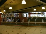 The lobby area has the fare control turnstiles plus gates which are opened at times of peak traffic. There are ramps from the lobby to the bus lanes at the Mermaid Avenue end of the station. There is an old-style wooden token booth still used at this station at times of peak traffic.