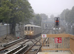 A nice station which has recently been renovated is next, Bay Terrace, an island platform located on an embankment. The exits at both ends are well maintained, especially the north exit, which has a glass awning and brick sides. Both Bay Terrace and Jefferson Ave. are notable in that they have historically served residential areas, not business districts, as the other stations do. North exit to Bay Terrace, south exit to Justin Ave.