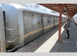 Jefferson Avenue is next, which has canopies over the only exit at the north end, to Jefferson Ave. Jefferson Ave. crossover, two manual switches, is visible from the north end. This station begins the descent from the embankment to the open cut of the next few stations.