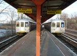 A nice station which has recently been renovated is next, Bay Terrace, an island platform located on an embankment. The exits at both ends are well maintained, especially the north exit, which has a glass awning and brick sides. Both Bay Terrace and Jefferson Ave. are notable in that they have historically served residential areas, not business districts, as the other stations do. North exit to Bay Terrace, south exit to Justin Ave.