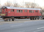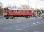 (image 138713) (355k, 1044x788) Country: United States City: New York System: New York City Transit Location: Throgs Neck Bridge - Wide Load Staging Area Car: R-17 (St. Louis, 1955-56) 6688 Photo by: Anthony Pisciotta Date: 01/23/2013 Notes: Shore Line Trolley Museum's R-17 6688 en route to Long Island to participate in a film shoot (next Spider-Man sequel). Viewed (this week/total): 5 / 2103