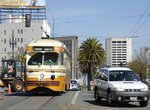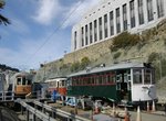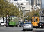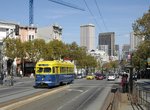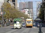 (image 107949) (227k, 930x618) Country: United States City: San Francisco/Bay Area, CA System: SF MUNI Location: Market/Van Ness Car: SF MUNI PCC (Ex-NJTransit, Ex-Twin City) (St. Louis Car Co., 1946-1947) 1075 Photo by: Peter Ehrlich Date: 10/24/2009 Notes: Inbound. Trailing view. With 1051 (Muni Simplified) outbound. Viewed (this week/total): 0 / 666