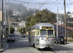 (image 107957) (203k, 930x614) Country: United States City: San Francisco/Bay Area, CA System: SF MUNI Location: Market/Dolores Car: SF MUNI PCC (Ex-NJTransit, Ex-Twin City) (St. Louis Car Co., 1946-1947) 1075 Photo by: Peter Ehrlich Date: 10/24/2009 Notes: Outbound. Viewed (this week/total): 0 / 545