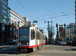 (image 58785) (201k, 864x574) Country: United States City: San Francisco/Bay Area, CA System: SF MUNI Line: MUNI Metro (Embarcadero) Location: 4th/King (Caltrain) Car: SF MUNI Breda LRV 1456 Photo by: Peter Ehrlich Date: 01/22/2007 Notes: Crossing 4th Street inbound on outbound track. Viewed (this week/total): 0 / 1293