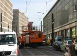 (image 63997) (180k, 1044x702) Country: Germany City: Berlin System: Berliner Verkehrsbetriebe (BVG) Location: Alexanderplatz / Karl-Liebknecht-Str. Route: M2 Photo by: Steffen Petrasch Date: 04/13/2007 Notes: Construction of new route for line M2. On the east is the S-Bahn station. Viewed (this week/total): 1 / 987