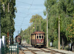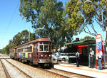 Train of cars 380 and 351 stop at South Terrace inbound, at the beginning of the Glenelg Line's private right-of-way. 351 and 380 were the first and the last of the 30 H-Class cars. Photo by Peter Ehrlich.