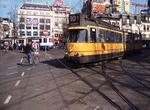 Continuing south, the roadway becomes known as Rokin, and the trams eventually arrive at Muntplein. At this point the tram lines diverge, with the 4, 9, heading to Rembrandtplein, a pleasant tree-filled square surrounded by sidewalk cafes and theaters, and the 16, 24, and 25 taking Vijzelgracht to Weteringcircuit. We'll continue via Rembrandtplein and then return to Weteringcircuit as part of our look at the crosstown lines (see below). As we depart Rembrandtplein, we come across yet another area of gantlet trackage, allowing two-way tram service on the narrow streets.