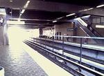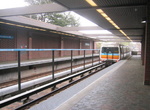 West End. The West End station is elevated with two side platforms surrounding two tracks. The roof of the station is steel and there are skylights with no glass over portions of the track. All the stairs down to the lower level have dark red tiles on the walls. Other portions of walls have orange tile on them. The columns supporting the platform are concrete. Lower level mezzanine is as wide and long as the whole platforms above, it's very spacious. There is a bus to rail transfer area and station entrances in the lower level. The West End station opened on September 11, 1982.