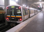 College Park. Below grade level, with one island platform between two tracks. It opened on June 18, 1988. An interesting feature of this station is that the platform is narrower at the north end and wider at the south end, presumably to allow room for the yard leads just south of the station. The narrowing of the platform is most apparent at the north end of the platform. The platform is brick and columns and roof are made of concrete. There is a bus area within fare control in the mezzanine.