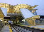 Approaching the San Francisco International Airport station, the tracks are joined by Millbrae leg of the wye. The station at SFO is configured as a terminal, not a through station, with two island platforms and three tracks. Exiting the station, the SFO Sky Train airport circulator is one level up. The fare from SFO to any of the downtown San Francisco stations is $4.70 (as of this writing).