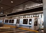The next station is Coliseum, an island platform station, which serves the Oakland Coliseum complex of ballpark, indoor arena, and exhibition hall, as well as the bus connection to the nearby Oakland Airport. Curiously, no provisions were made for laying up trains for large events.