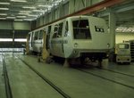 There are four types of cars. The first several orders, all built by Rohr, were late and overweight. They came as cab cars with the fiberglass slant fronts. The "B" center cars have no cabs, but have control cabinets with hostler controls for moving the cars around the yards (and perhaps could be used in emergency situations). The third group, "C" cars, from GEC Alstom, have flat fronts on the cabs and can run mid-train. The fourth order, C-2 cars, are like the GEC cars but add metal stanchions and were built by Morrison-Knudsen. Currently, Adtranz is rehabbing the original cars.