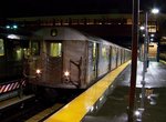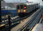 At 9th Avenue, the West End Line uses the upper level. There used to be a pedestrian crossing over the center express track at the north side of the station that also provided TA employees access to the 36th Street Yard. Until recently, there was never a "no admittance" sign; in the last few years, one was erected. That perch provided for some great shots of trains coming from the 4th Avenue subway. However, good shots can still be taken from the platform level.