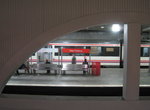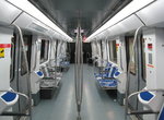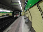 There are two different track gauges in the Metro ("international" standard and a wider Spanish gauge) so the cars are not interchangable. The stations are all mostly modern concrete looking and mostly undecorated, and nearly all are side platforms. The station platforms have vending machines, signage showing time till next train, and flat panel computer screens with animated advertising and video. There's also piped-in "Muzak" on the platforms.