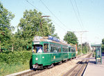A number of classic Duewag articulated cars can be seen in use, although appearances in passenger-carrying service seem a little sporadic. When they do perform as such, they seem to operate as two units coupled together - single units are popular as training cars, however. Some have apparently already been sold to the Sarajevo tramway in Bosnia, and given the good condition the remaining units are in it would seem that they too will see further use elsewhere after retirement from Basel.