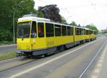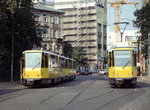 BVG operates two types of tram services. The MetroTram routes, with an M prefix, operate 24/7; there are 9 of these, the heaviest one being line M4, which operates from Hackescher Markt past Alexanderplatz into northeast Berlin. Headways are 10 minutes or less on all of these routes during the daytime, with M4 and M5 seeing trams every 2 minutes! Then there are 14 liines, simply called "Straßenbahn", without the "M" prefix, and these run up to 20 hours a day, but can see headways of 20 minutes. Most of these operate in southeast Berlin, but line 12 serves North Berlin as well as other parts of the city. Some routes are now 100% accessible.