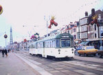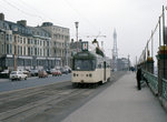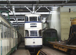 Other cars include 13 closed single-deck 2-man trams built by Brush in 1937, seven 2-car motor/trailer sets built by Blackpool Corporation Transport and Metro-Cammell in 1960/61, and Blackpool's newest, 8 "Centenary" single-deck, one-man trams built by East Lancashire Coachbuilders between 1984-88. Restoration is underway of a "Coronation" class car dating to 1952/53, #641, which uses VAMBAC electricals (similar in many ways to a PCC), When operational, this will be the only such car in service anywhere in England. Another remaining "Coronation", 660, using standard motors/controls, is also in service. A group of one-man cars reconstructed from older stock, #1-13, which were operating in 1974 during my first visit, are now scrapped.