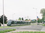 Bordeaux Citadis 402 tram no. 2205 on Line B at Place des Quinconces. Photo by Jean-Pierre Vergez, April 2007.