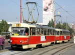 Tatra T3SU/T3SUCS - The most numerous type in the fleet, they have one cab each and are arranged into two-car units, one a permanent trailer. Both cabs point forward, and that in the second car has no mirrors, windshield wipers and such. The door from the passenger compartment to the trailing unit's cab is often padlocked shut. Whilst they operate as twin-car sets it would seem that occasionally (presumably due to equipment shortages) single car units are operated in service, although it's possible that some cars could be permanantly operated as single units. Some cars are fitted with dot-matrix destination screens whilst most retain the traditional boards. Whilst a handful have received full modernisation, and some a 'mini-upgrade', the majority seem to run in as-delivered condition.