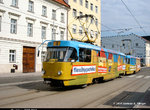 An unusual feature of Bratislava trams is the high percentage of cars carrying overall advertising liveries, particularly the Tatra T6A5 and to a lesser extent the K2 rebuilt types. On the remaining cars, several versions of fleet livery are to be seen. One is a traditional red and cream scheme, very similar to that of Prague's trams, whilst a more modern version consists of a pleasing combination of red, blue and gray. The latter can be found on those K2 rebuilds that don't carry all-over adverts and a handful of T6A5 cars. A few T3SU/T3SUCS cars carry a hybrid red and gray design.