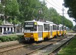Budapest rosters four types of trams. The oldest in regular service are the UV 4-axle trams, made up into 2-car trains, or three-car sets with a trailer in the middle. These were built in several groups between 1956 and 1964. Trailers dating as far back as 1939 were rebuilt to match the style of the UV motors. About half of the fleet is still in service, and can be seen on Routes 19, 41, 42, 47, 49 and 52. They are numbered in the 3200, 3300, 3400 and 3800 series, with trailers numbered between 5808 and 6045. These bouncy, noisy trams are fun to ride! The UV type cars will be scrapped in 2005-2006, being replaced by Siemens "Combino" trams similar to those in Amsterdam. Three or four of the UV cars will be given to museums.