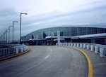 We board our train and wait for the signal to start our journey. We soon hear a buzzer followed by a "ding", and the motorman closes the train doors and gets us moving. Still underground, we pass through some interlockings and can sometimes see other trains laid up on other tracks beside us. We squeal around a few curves, and emerge in the median of the airport highway. We see the people mover tracks off to the left, and we soon pass under a taxiway. We round a gentle curve and see Terminal 5 off to our left as we pass under the people mover tracks and leave the airport. A large sign above the highway announces "Welcome to Chicago. Richard M. Daley, Mayor."