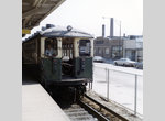 Our journey begins at Kimball (3400W / 4800N). This grade-level station is at the corner of Kimball and Lawrence Avenues, in the heart of the diverse Albany Park neighborhood. The station itself is a 1960's-style, low-slung modernist station constructed of beige brick and white steelwork. Fare control is in a glass-enclosed area at street level, with a few steps that lead up to the platforms. This terminal has three tracks, all ending at bumper blocks. The easternmost track is served by a single side platform, while the other two tracks are served by an island platform. This island platform is the most commonly used; it is rare to see the side platform in use although there is nothing to prevent people from accessing it. A small storage yard and maintenance facility is directly to the east of the station, and a small commuter parking lot faces Lawrence Avenue.