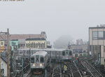 Leaving Kimball, we curve to the east and find ourselves travelling between two alleys at grade, peering into the garages and back yards of houses and apartment buildings in this quiet residential neighborhood. We arrive at Kedzie (3200W / 4700N), the first of three small grade-level stations with island platforms. Kedzie has a newer station house at the eastern end of the platform, and an additional exit at the west end of the platform. Trains cross several streets at grade along this stretch, with traditional crossing gates and railroad warning signals to warn approaching motorists and pedestrians. Traction power is via third rail, and although there are no gates to prevent pedestrians from accessing the ROW, so-called "cattle boards" at crossings prevent access to the tracks, at least not without some effort on the part of the trespasser.