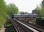 Our next stop is Central (5600W / 400N), very similar to the previous three stops except with a larger platform. Soon after leaving Central, we jog slightly to the south, leaving the embankment behind in favor of a steel elevated structure that will carry us all the way to the Loop and South Side.