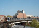 Just to the east of where the southbound express tracks join the ROW, there sits a large piece of empty land that once was home to a small CTA yard and maintenance facility. This facility was destroyed in a large fire in the late 1990's which disrupted service on the Red and Purple lines for about a week. It was one of the most spectacular fires the city had seen in some years, fueled by numerous solvents and lubricants housed in the maintenance facility. One can still see the remnants of spur tracks that once led into the facility. The site is now used as a parking lot for nearby Harry Truman College, one of the City Colleges of Chicago. Truman College is the large steel-and-glass building to our right as we leave Wilson.