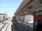 Howard serves as a terminal for not only the Red Line, but also the Yellow Line and the Purple Line during off-peak hours, not to mention quite a few CTA and Pace bus routes. Howard is an elevated station, on an earthen and concrete embankment. Fare control is at street level, below the tracks. From there, stairs and an escalator lead to the two island platforms up above. The platforms themselves are of a similar construction as most of the other stations along this line, except they are considerably longer and wider than normal. A crossover allows transfers between the two platforms at the northern end of the station, and this crossover affords a spectacular view of the yards to the north of the station. A maintenance facility is visible at the eastern end of the yard, and the commuter rail tracks of the Metra / Union Pacific North Line are visible just beyond the yards. To the west of the station, we see a large bus shelter and a new commuter parking garage.