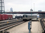 Moving onward, we pass high above the city streets on a viaduct before joining the Green Line tracks at 18th Street via the CTA's only flying junction. Now heading due north, we pass over the Green Line tracks before swinging around and joining them. Looking to our left, we soon see a pair of tracks dive into a subway portal below. This is another short stretch of non-revenue trackage, once used when trains from the State Street Subway connected to what is now the southern leg of the Green Line. This section of track is occasionally used to lay up work trains or other trains that have been pulled from service.